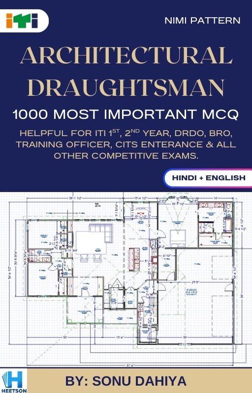 Architectural Draughtsman MCQ eBook in Hindi English. Helpful for ITI 1st, 2nd year Offline/Online/CBT theory exam, DRDO, BRO, Training officer, CITS/CTI Enterance exam & all other competitive exams. All Questions collected from previous year question papers. Prepare according to Bharatskills & NIMI Pattern. Based on CTS new syllabus, NSQF Level 4 & 5 New Syllabus.