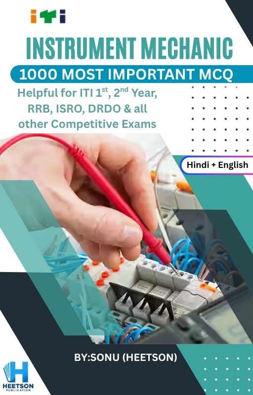 ITI Instrument Mechanic MCQ Book for CTS 1st, 2nd Year theory exam paper preparation in Hindi English. It includes 1000 carefully selected questions from previous year papers, NIMI Question Bank, and Bharat Skills. Designed for students of the CTS trade, this PDF book covers key topics likely to appear in the final CBT exam.